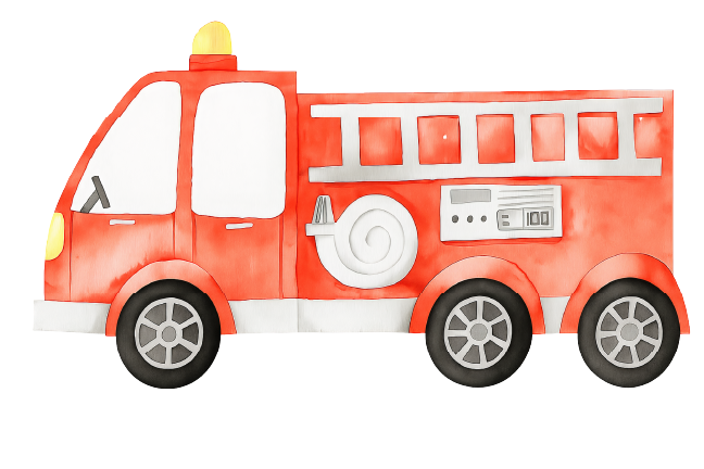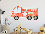 Brandweerauto Muursticker in Waterverf Stijl – Unieke Watercolor Brandweer Wandsticker voor Babykamer of Kinderkamer – Verwijderbare Muurdecoratie voor Jongens en Meisjes