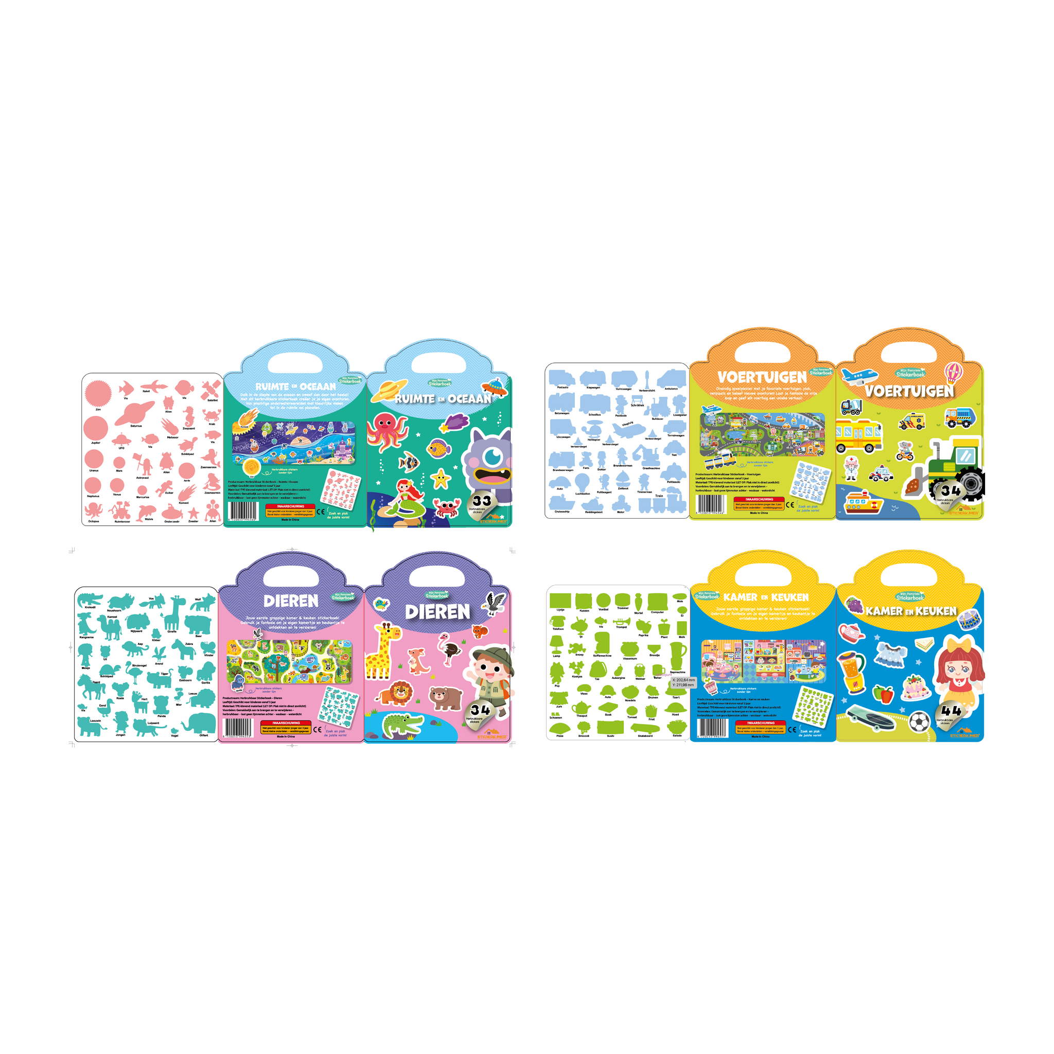 Herbruikbaar Stickerboek Kinderen: Wasbaar en in 4 Thema’s | Educatief Speelgoed