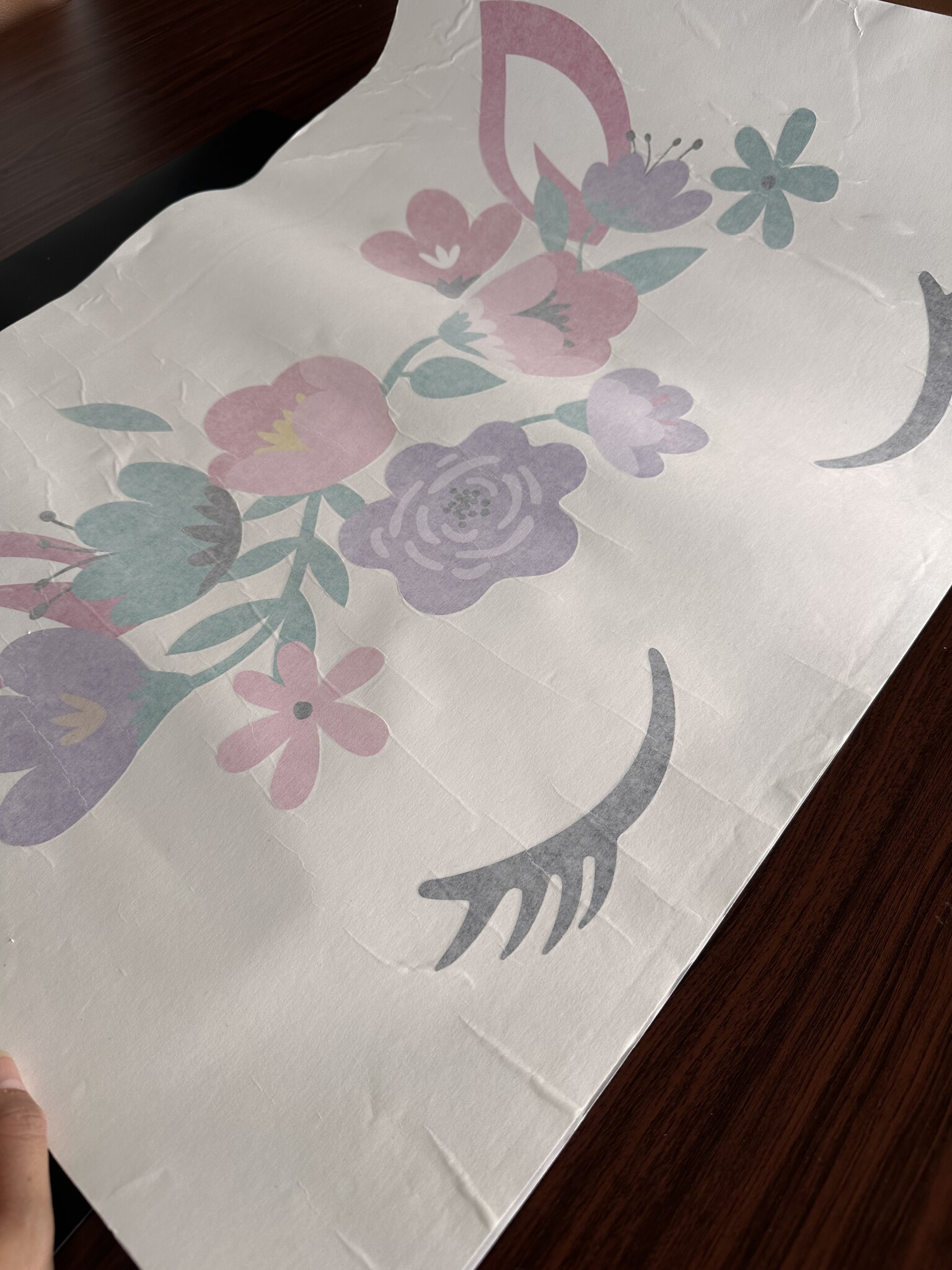 - Deze muursticker heeft geen gouden oren en horn. Applicatie folie heeft wat kreuken, maar de muursticker zelf heeft geen beschadigingen.