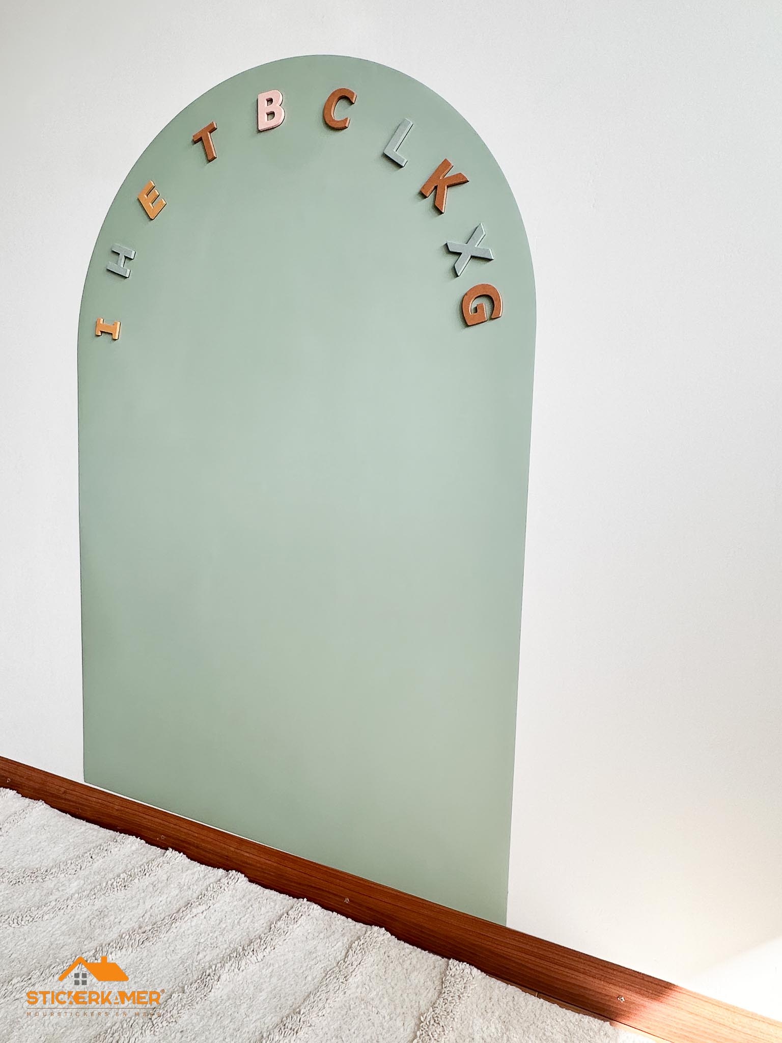 Nieuwe collectie mooi ontwerp muursticker boog verkrijgbaar in 5 hippe kleuren: Mindfull Jade, Grateful green, Beige Taupe, Dandy Dust en Powder Pink