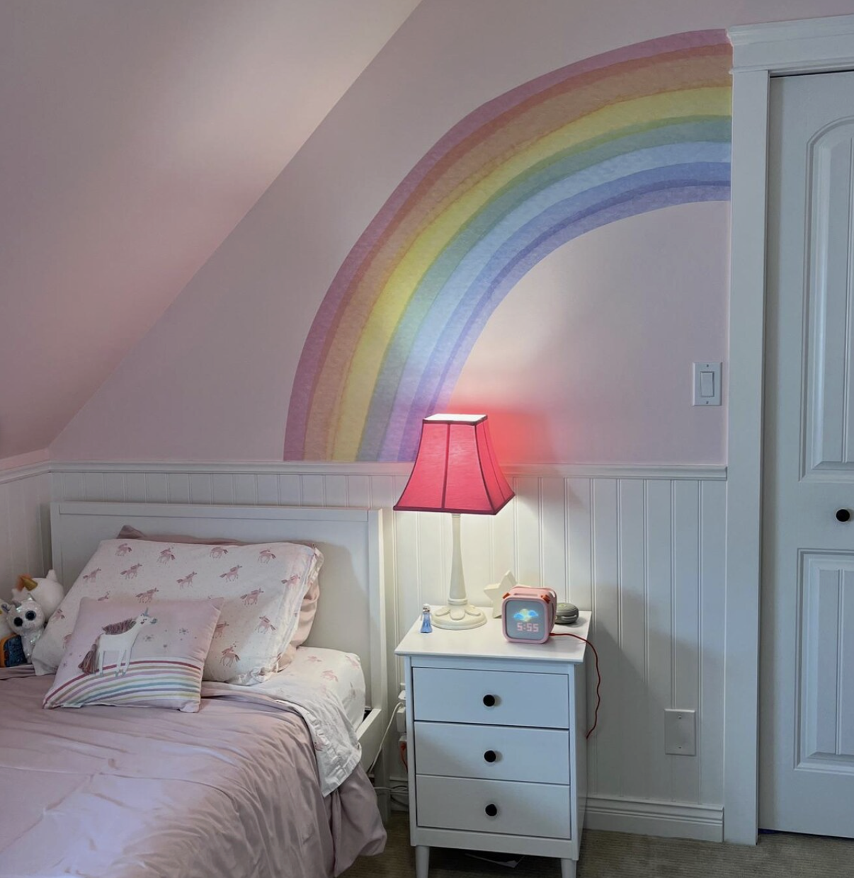 Grote muursticker regenboog is een echte eye catcher voor in de kinderkamer.