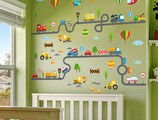 muursticker auto weg kinderkamer voertuigen zelfklevend 121x91cm