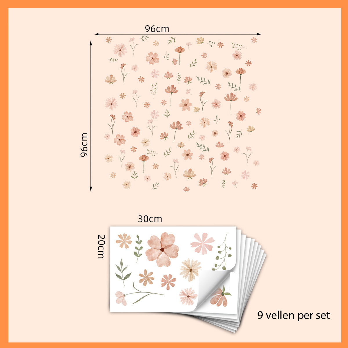Muursticker bestaat uit 9 vellen van 30cm x 20cm.