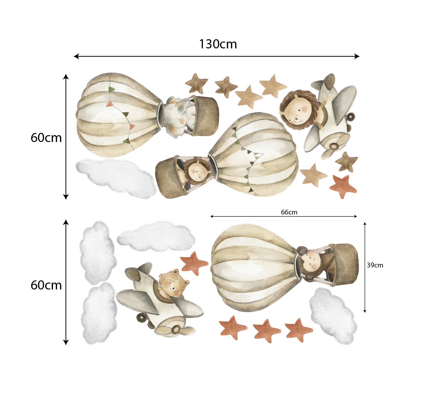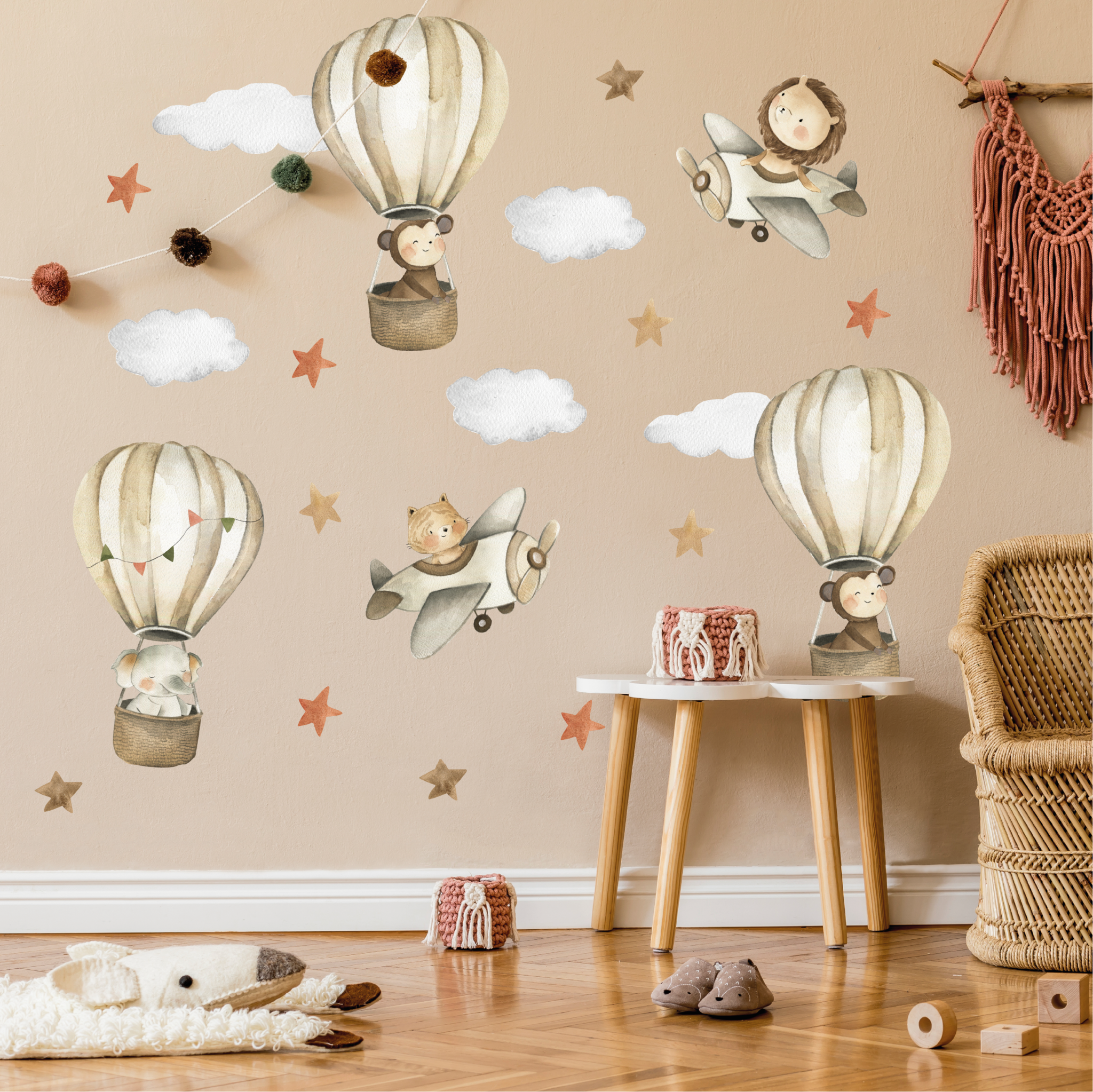 Muursticker dieren luchtballon en vliegtuig - zelfklevend en verwijderbaar