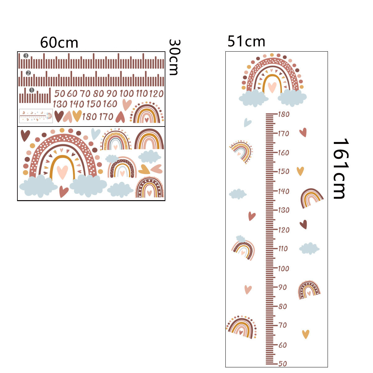 Muursticker groeimeter regenboog en hartjes kinderkamer meisjes