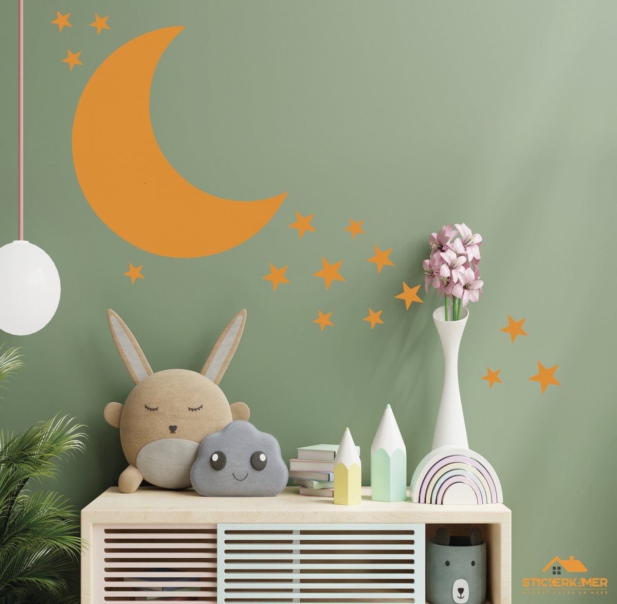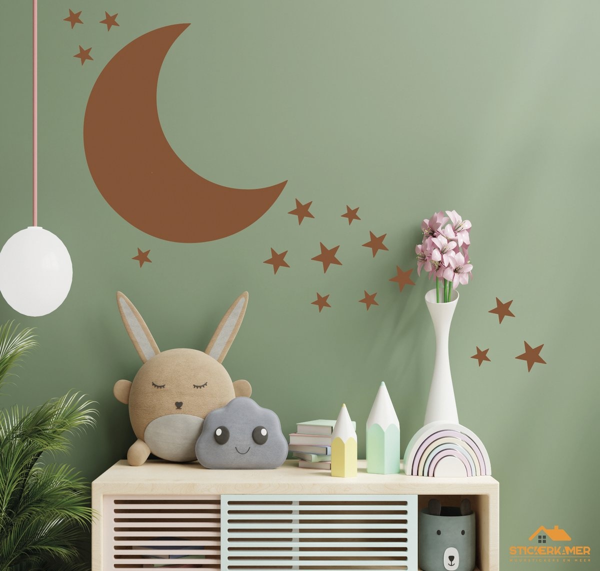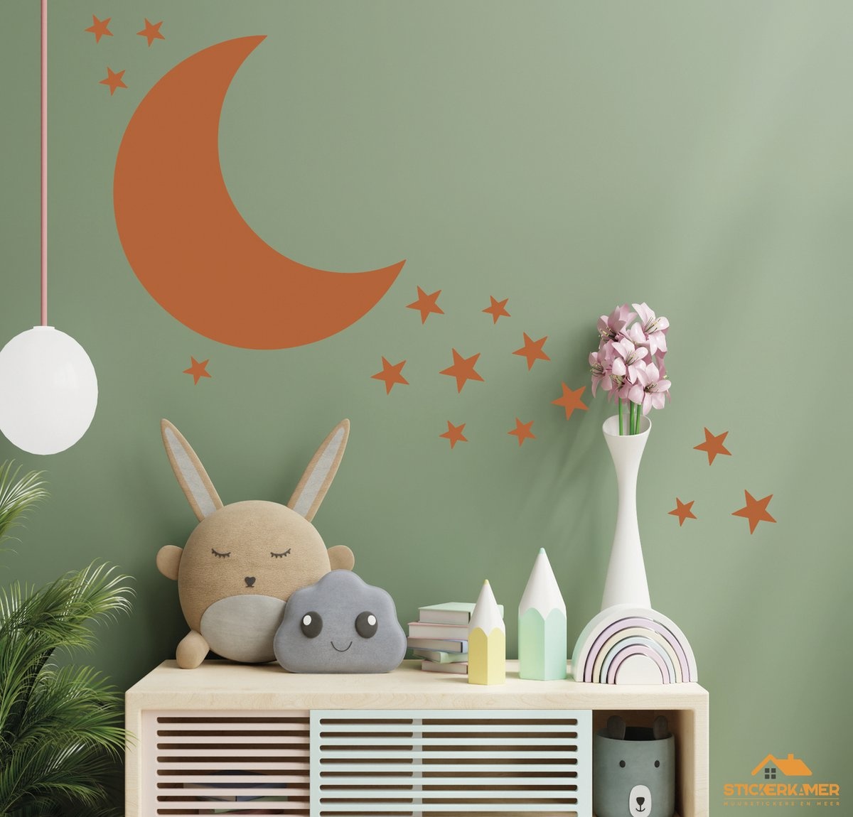 Muursticker Maan & Sterren – Zelfklevend & Verwijderbaar