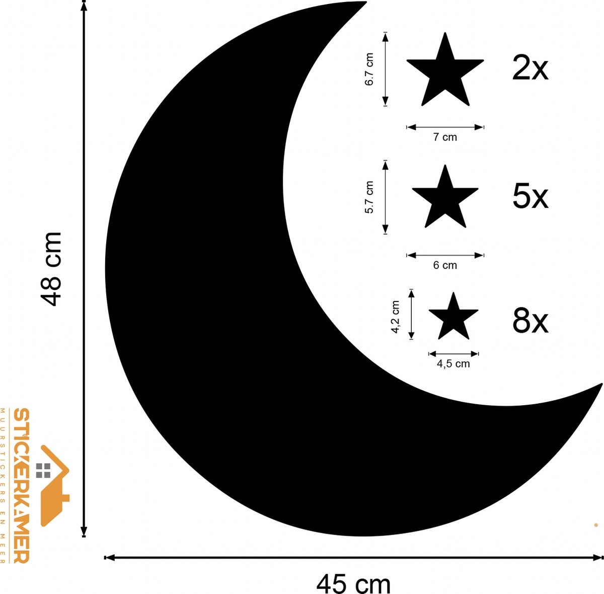 Geef de kinderkamer een rustgevende sfeer met deze muursticker van een maan en sterren. Perfect voor boven het bedje, in een speelhoek of als decoratie in de babykamer.