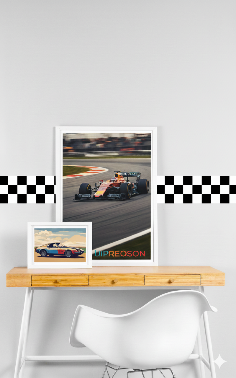 Tover de kinderkamer om tot een stoere racebaan met deze vrolijke muursticker. Eenvoudig aan te brengen en te verwijderen en ideaal voor babykamer en kinderkamer.