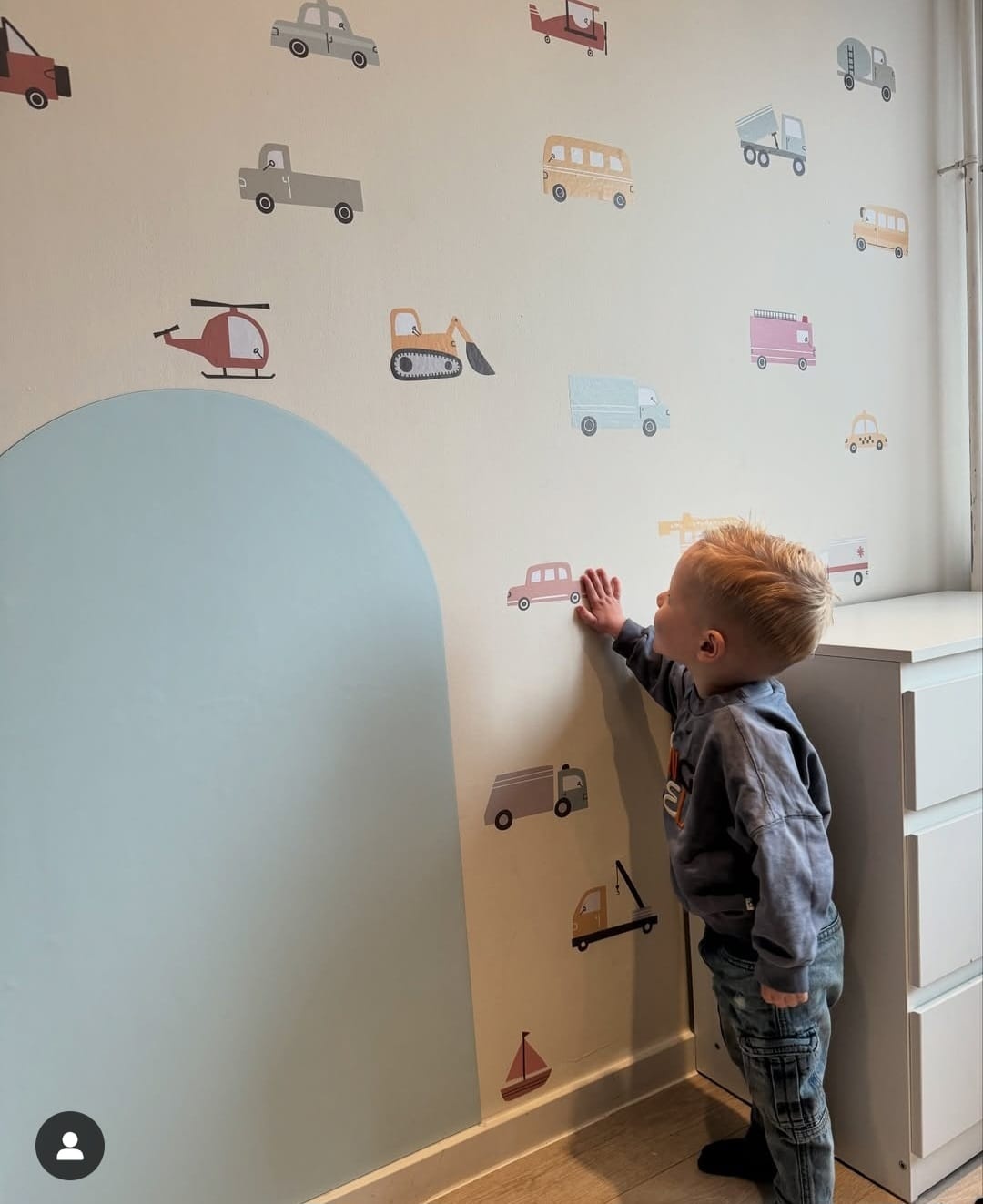 Muursticker Voertuigen in Neutrale Kleuren voor Kinderkamer – Speelse Auto's, Treinen en Vliegtuigen