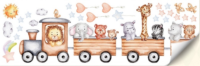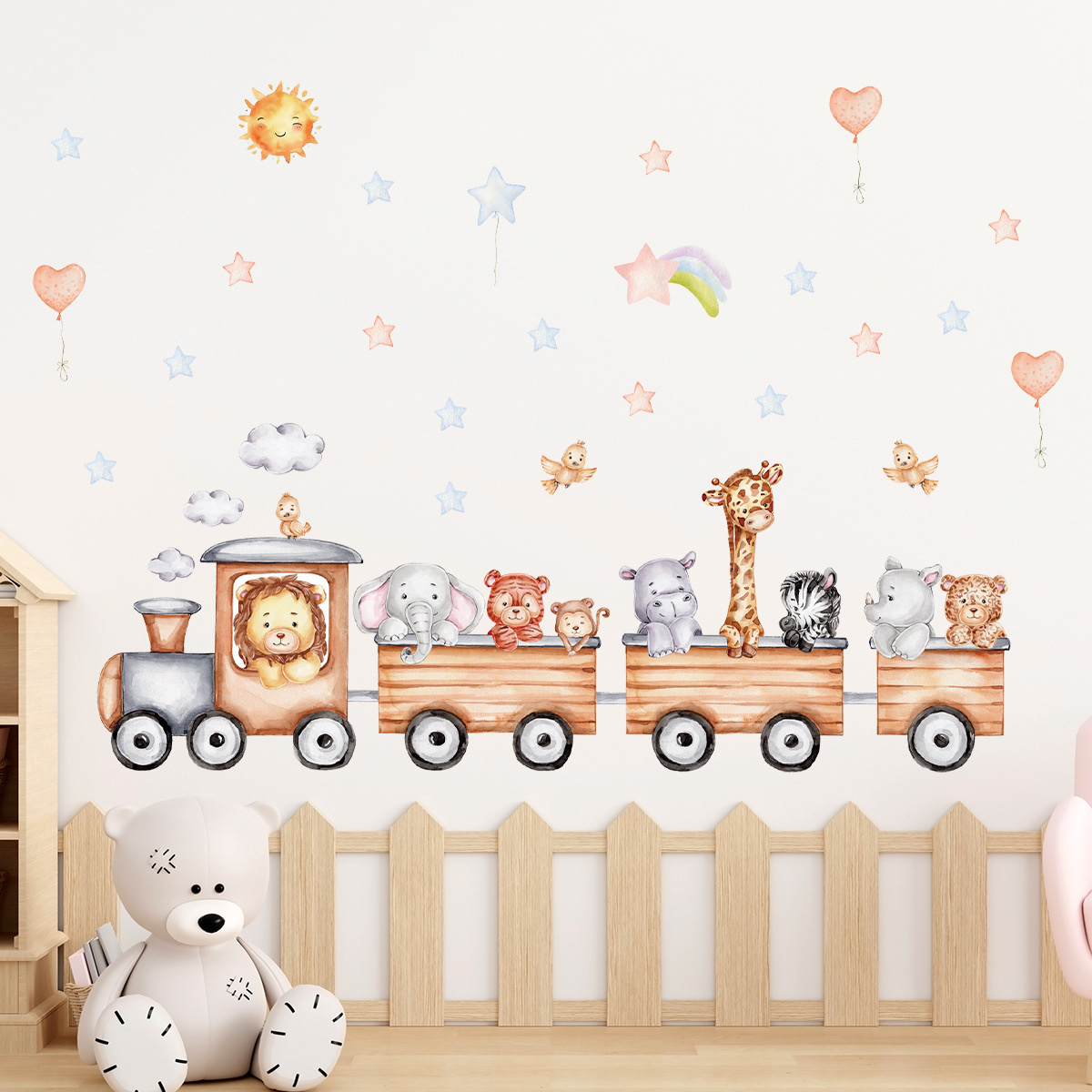 Muursticker Kinderkamer – Dieren Trein, Zelfklevend & Verwijderbaar