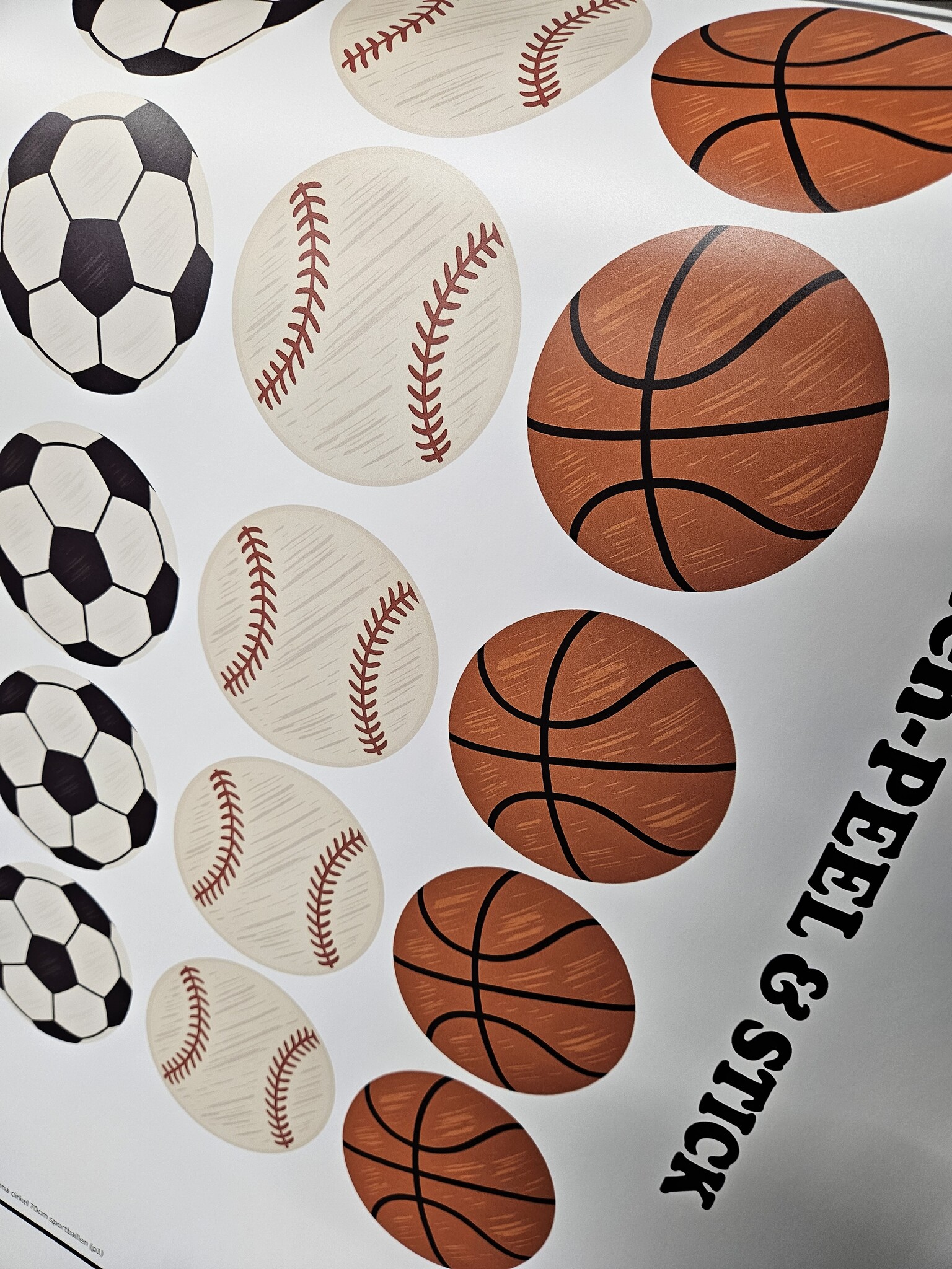 Peel & Stick sport muursticker set – rugbybal, voetbal, tennisbal, honkbal & basketbal – zelfklevende en verwijderbare muurstickers voor kinderkamer & speelkamer decor