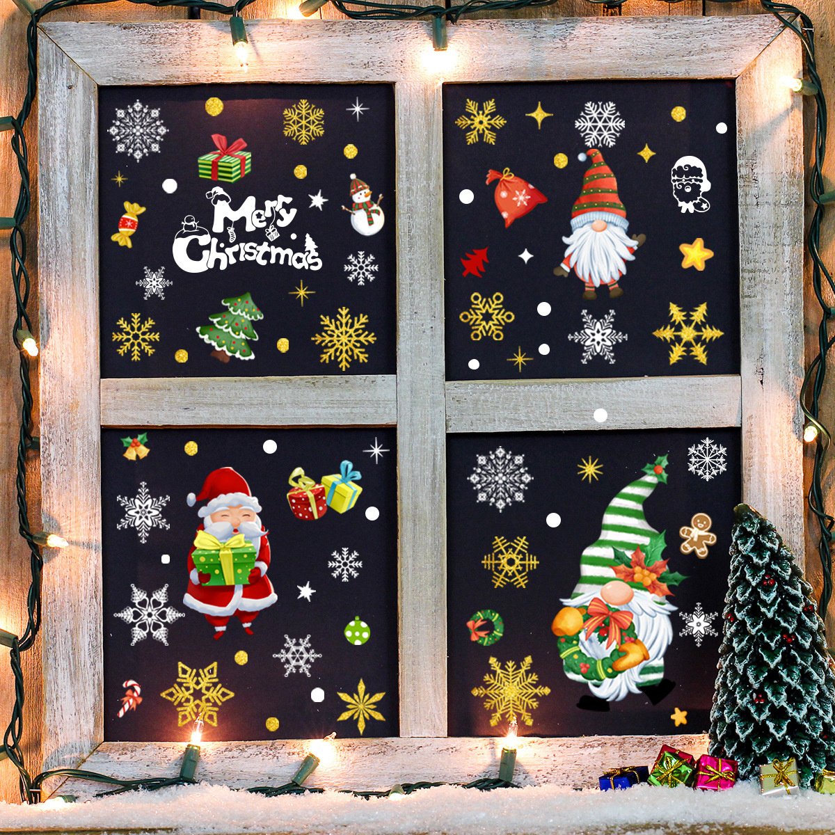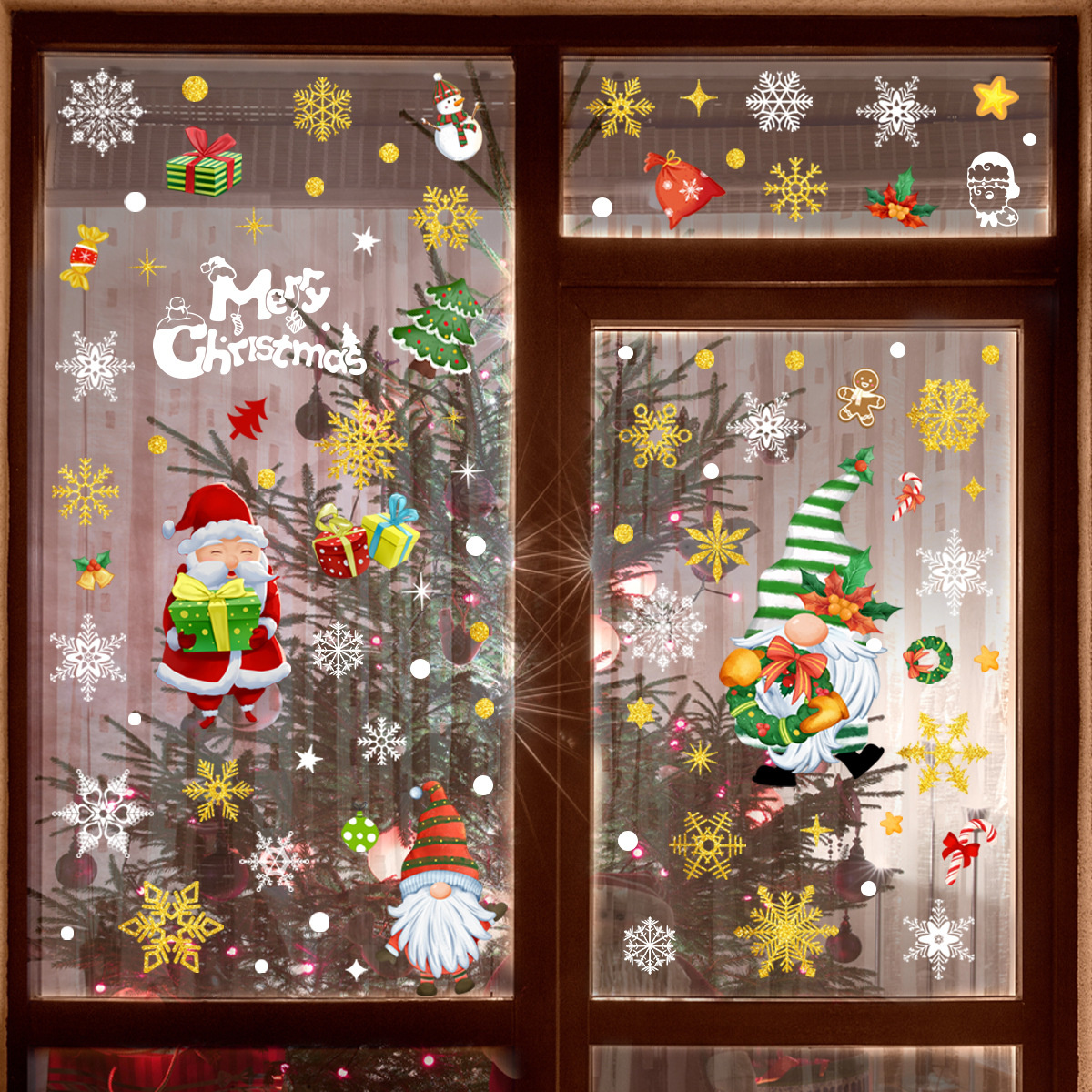9 vellen Statische raamdecoratie kerst sneeuwvlokken goud glitter herbruikbaar.