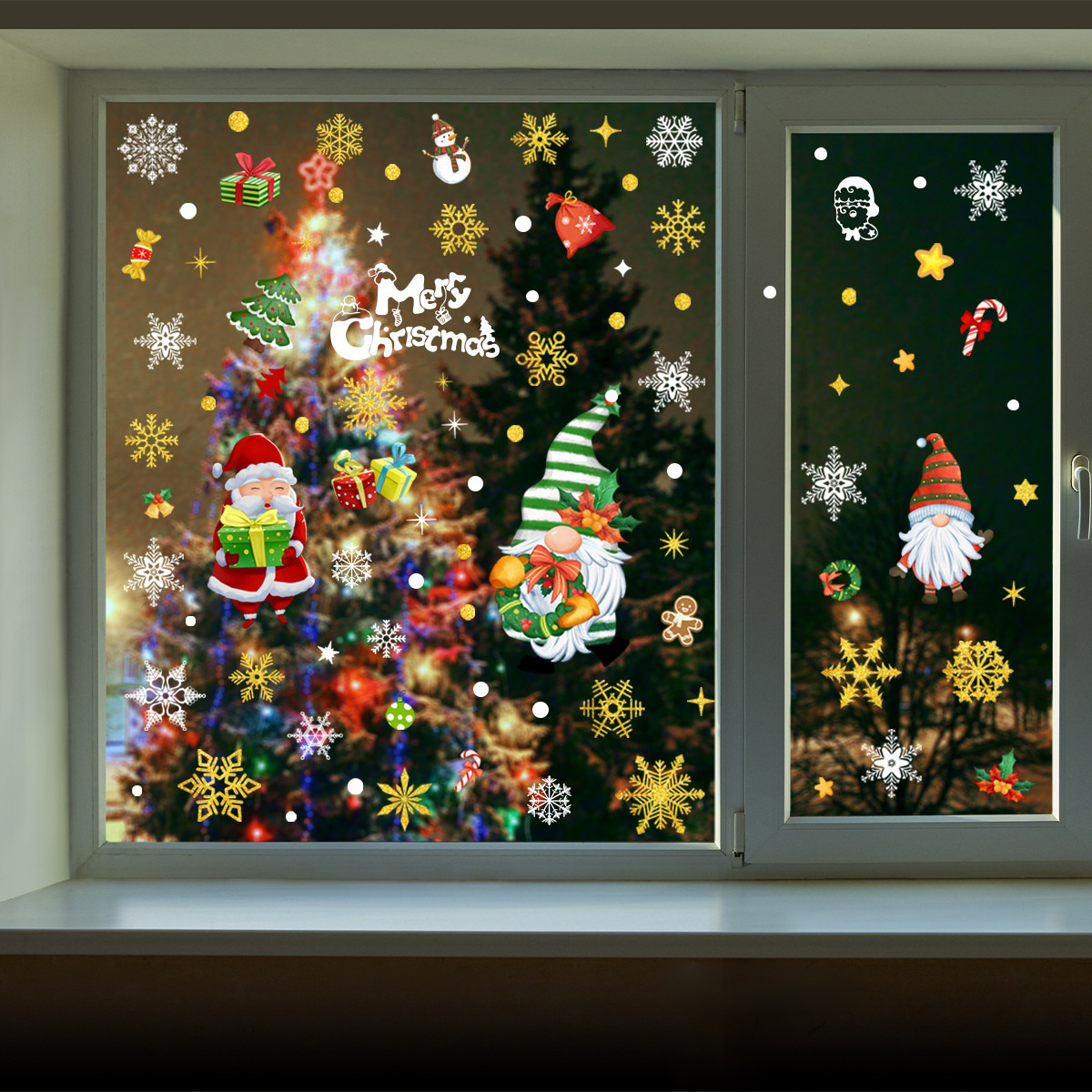 Statische raamdecoratie kerst sneeuwvlokken goud glitter herbruikbaar. Prachtige statische raamdecoratie gouden glitter sneeuwvlokken en kerst elementen. De sneeuwvlokken kunnen alleen geplaatst worden op ramen en spiegels. Pimp je lege raam tijdens de feestelijke kerstdagen makkelijk op met de statische raamdecoratie sneeuwvlokken. Ze zijn makkelijk weer te verwijderen en herbruikbaar.