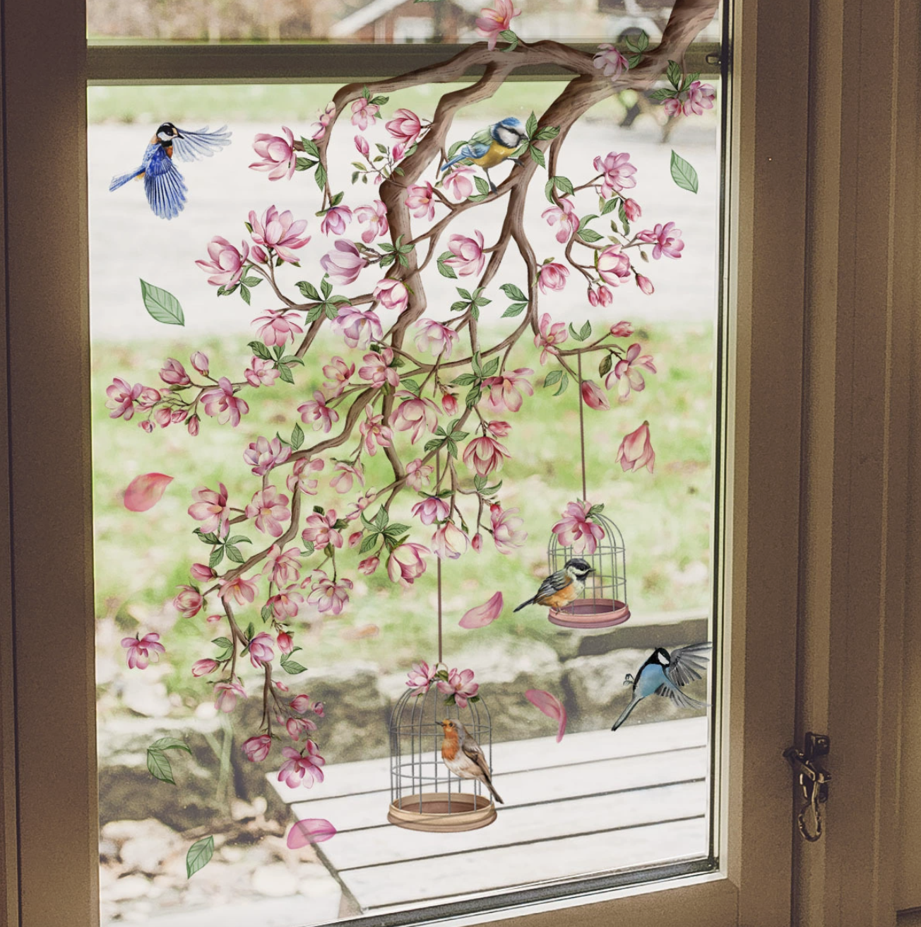 Geef je ramen een frisse en elegante uitstraling met deze statische raamsticker met een prachtig ontwerp van bloesem, vogels en vlinders. Dankzij de dubbelzijdige print is het ontwerp zowel van binnen als buiten zichtbaar, waardoor het een stijlvolle toevoeging is aan elk interieur. Perfect voor ramen, glazen deuren of andere gladde oppervlakken, zonder lijmresten achter te laten.