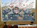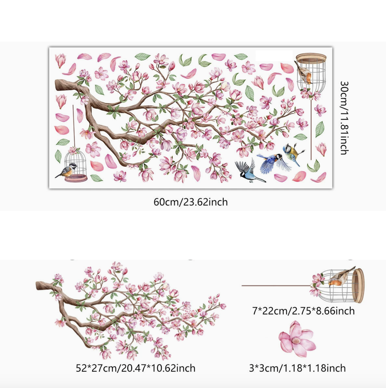 Statische bloesem tak raamsticker dubbelzijdig geprint met Bloemen, Vogels en Vlinders – Dubbelzijdige Decoratie voor Ramen & Glas