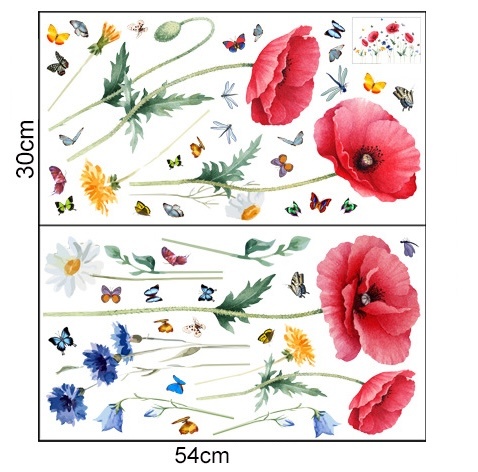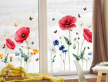 Geef je ramen een frisse en kleurrijke uitstraling met deze prachtige statische raamsticker. Het design met rode papavers, veldbloemen en kleurrijke vlinders brengt direct een vrolijke en natuurlijke sfeer in huis.