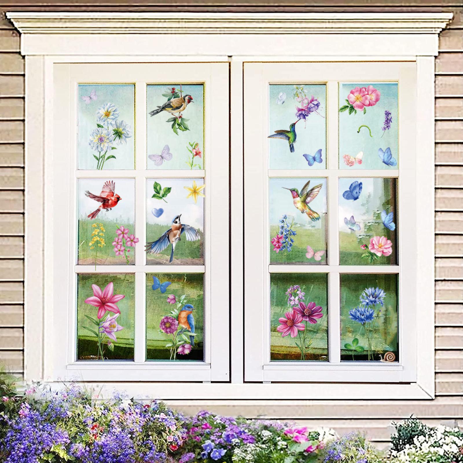 Haal de natuur in huis met deze statische raamstickers vol kleurrijke vogels, vlinders en bloemen. De stickers geven je ramen een levendige en frisse uitstraling. Dankzij de dubbelzijdige bedrukking geniet je zowel binnen als buiten van hetzelfde prachtige effect.
