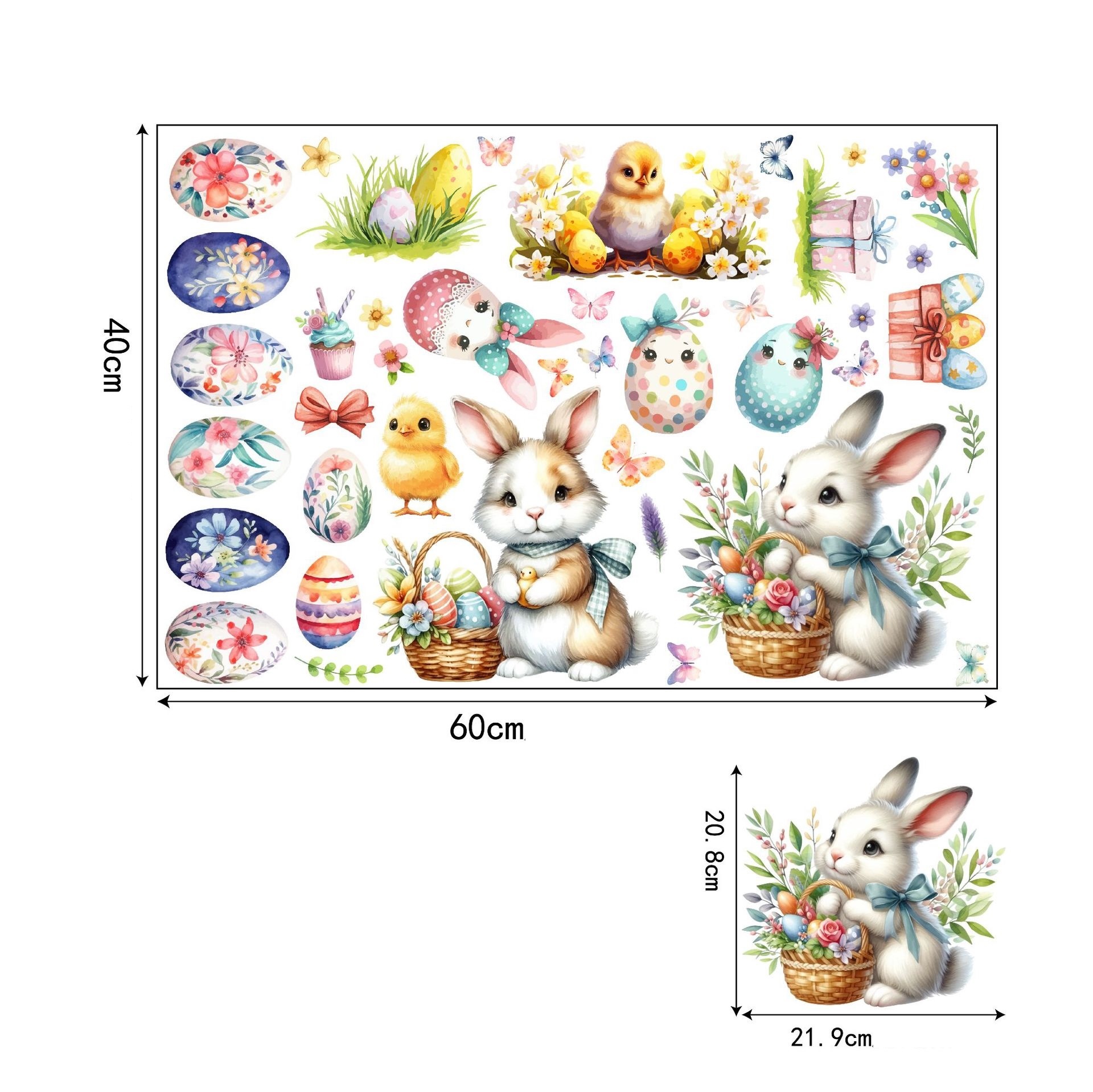 paas raamstickers statisch set 60x40 cm konijnen eieren kuikens