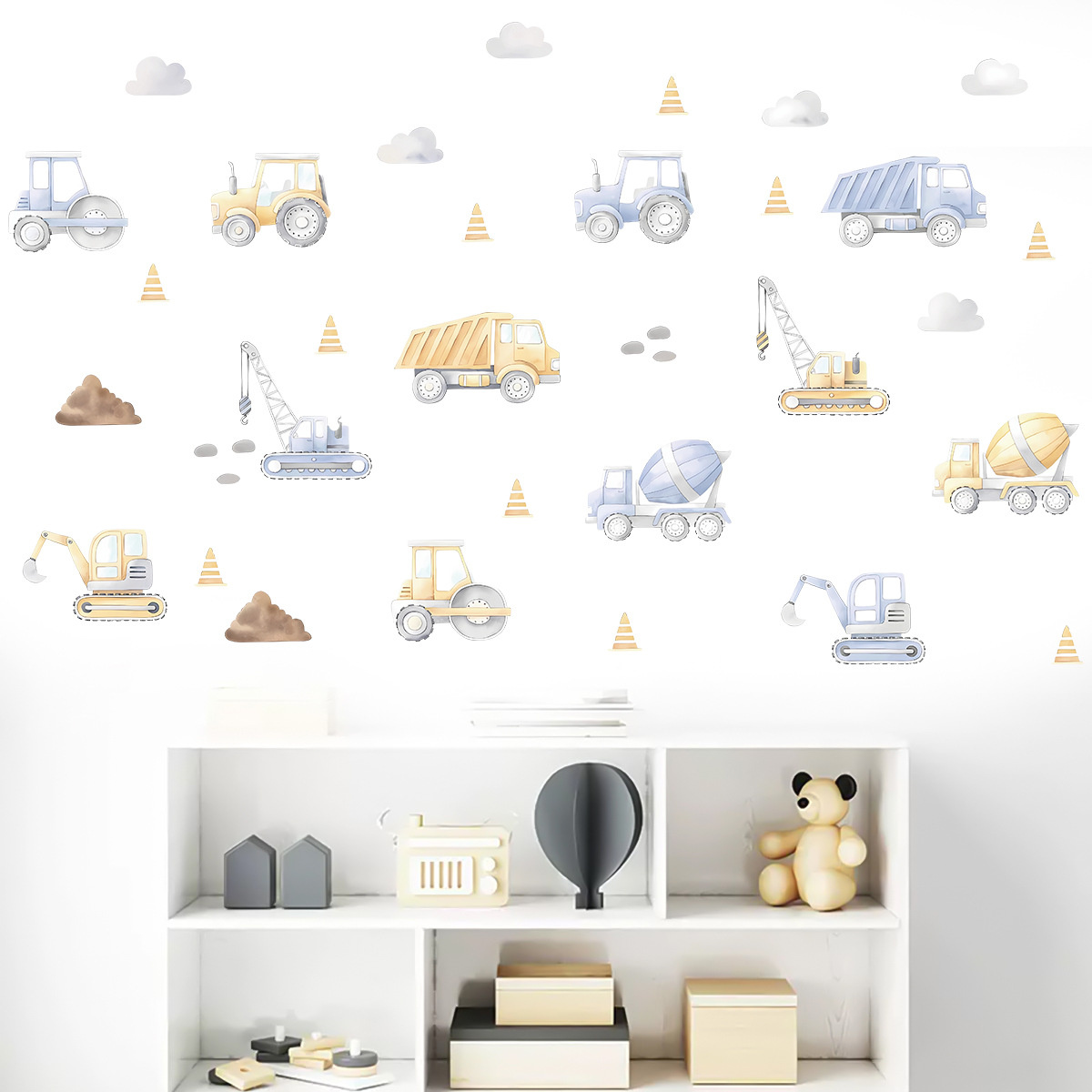 Tractor voertuigen zachte kleuren kinderkamer muurstickers