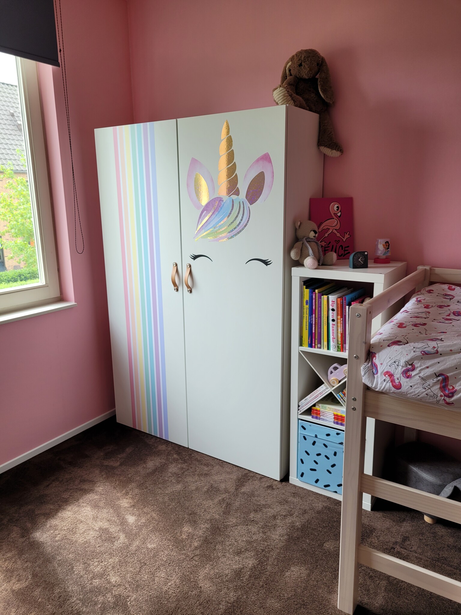 Grote unicorn / eenhoorn muursticker is een echte eye catcher voor in de kinderkamer. De sticker is optioneel met bijpassende sterren te bestellen.