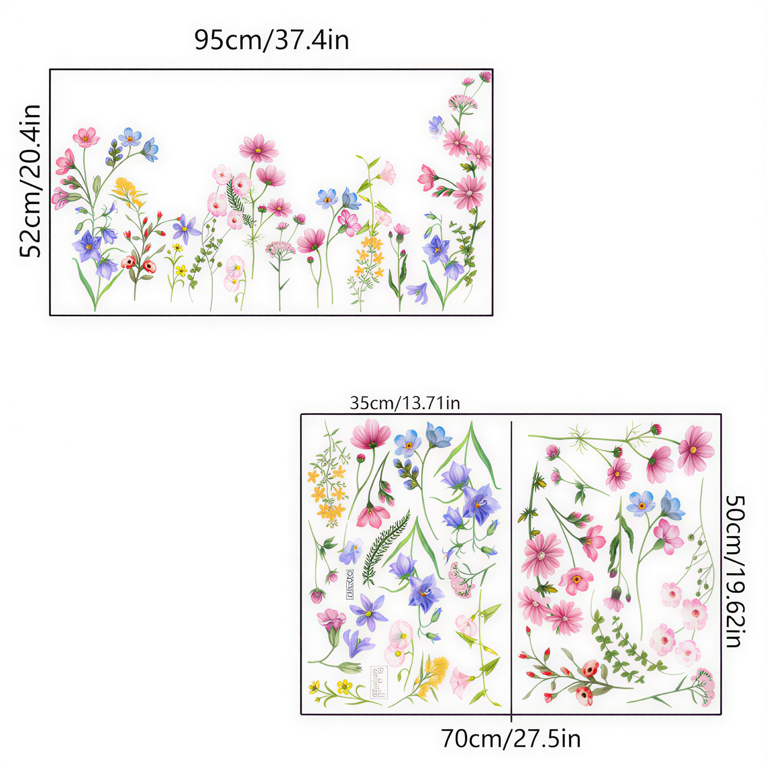 Breng je muren tot leven met deze prachtige set zelfklevende muurstickers van kleurrijke veld- en tuinbloemen. Deze stickers zijn de ideale oplossing om zonder verf of behang direct een natuurlijke en vrolijke sfeer in huis te creëren. Dankzij de hoogwaardige zelfklevende laag zijn de stickers eenvoudig aan te brengen op elke gladde, droge ondergrond.